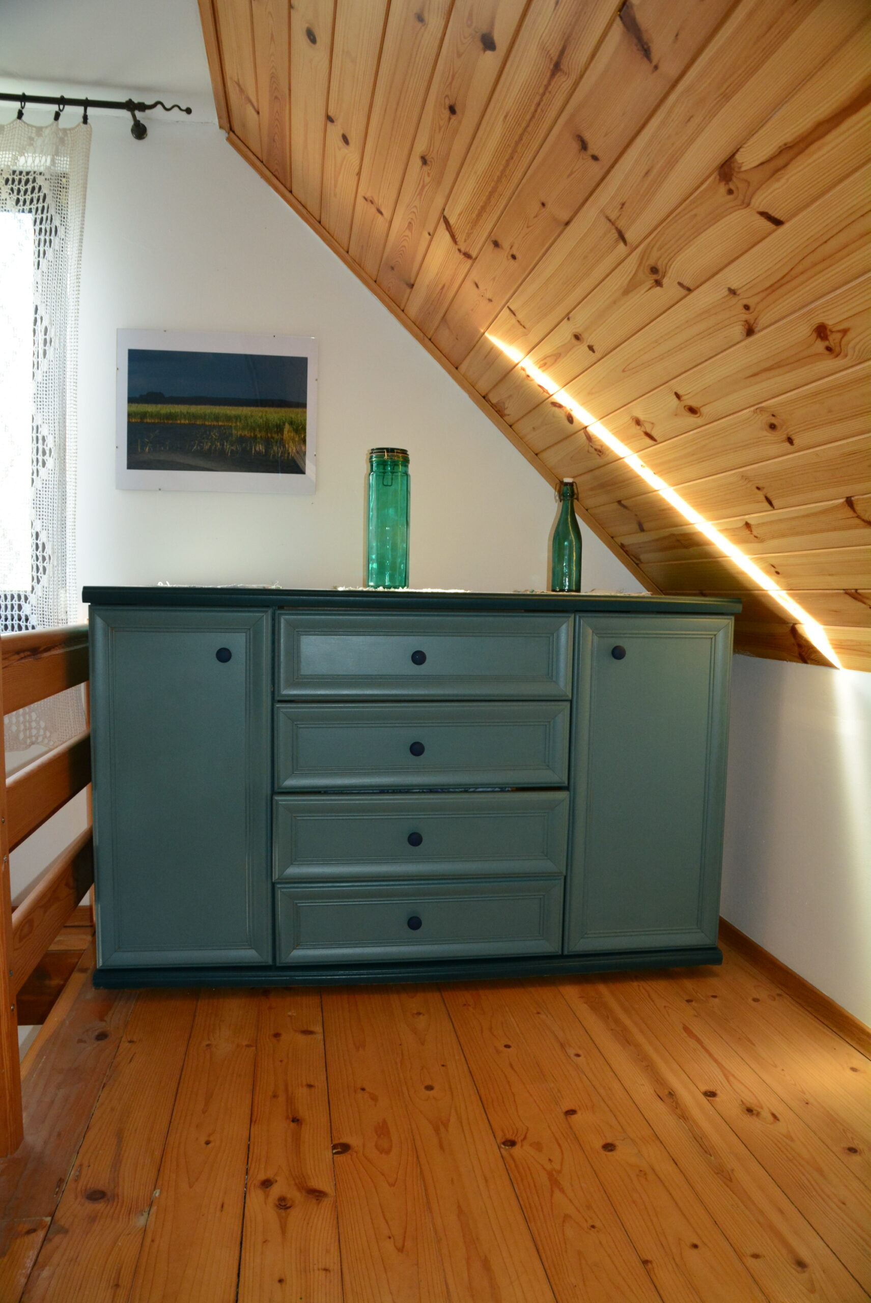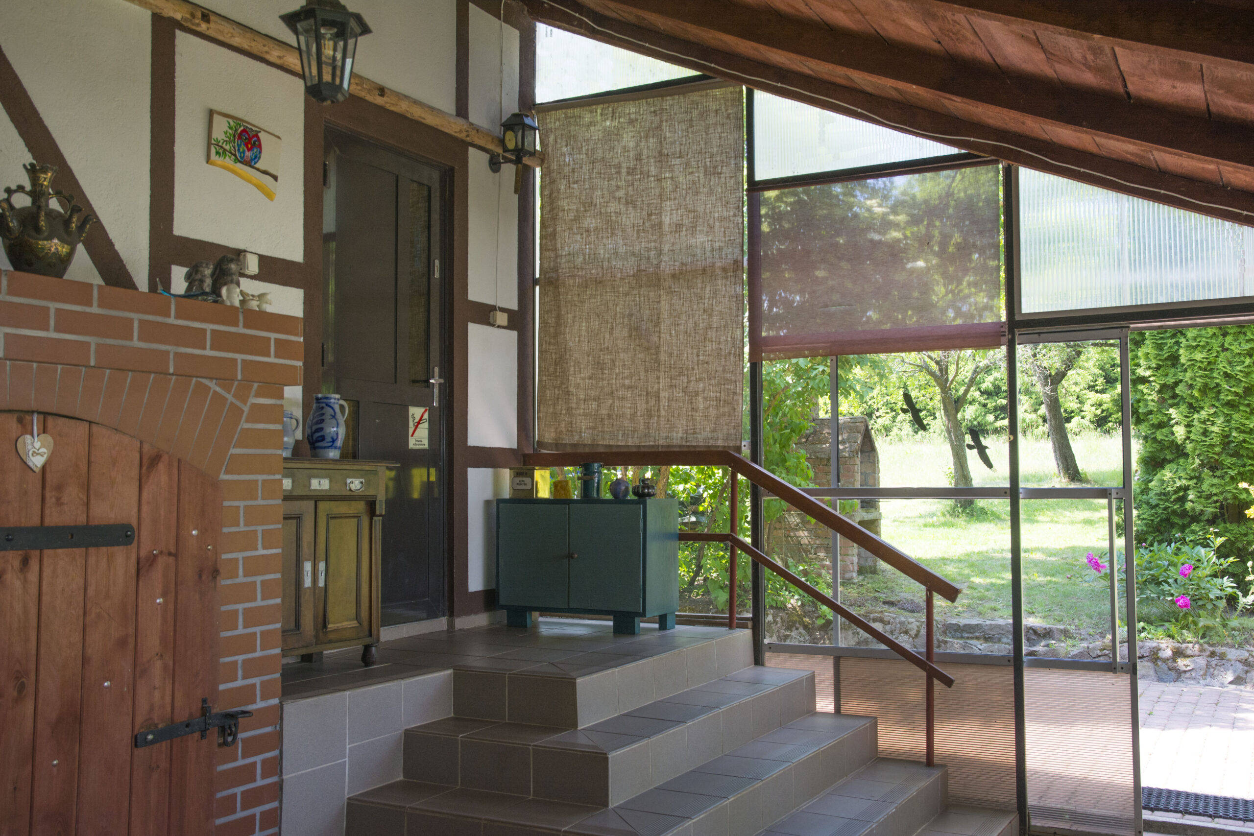 - Dom ok. 60 m kwadratowych (salon, kuchnia, 1 łazienka, przestronna sypialnia na poddaszu) z dużą oszkloną werandą