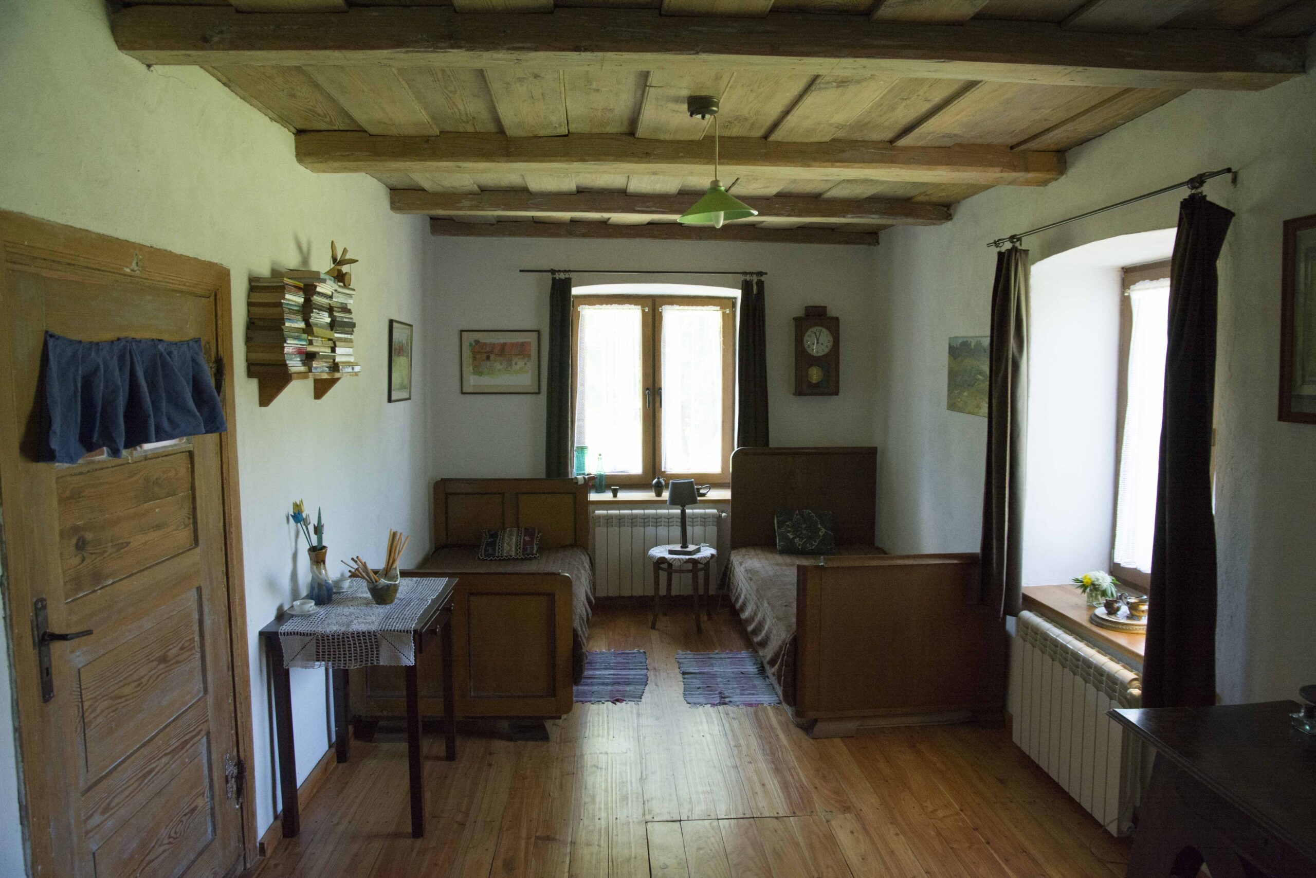 Dom w całkowitym odosobnieniu, z zupełnie wyjątkowym krajobrazem polodowcowym, który można podziwiać z werandy. Ulokowany na styku granic z Rosją i Litwą. Miejsce z którego dobrze widać przylatujące i odlatujące ptaki, a sąsiadami są zwierzęta leśne. Dom ze swoją historią, nawiązującą do historii tego kawałka Polski, ale też dom który powstał z zachwytu przyjezdnych nad tym rejonem.